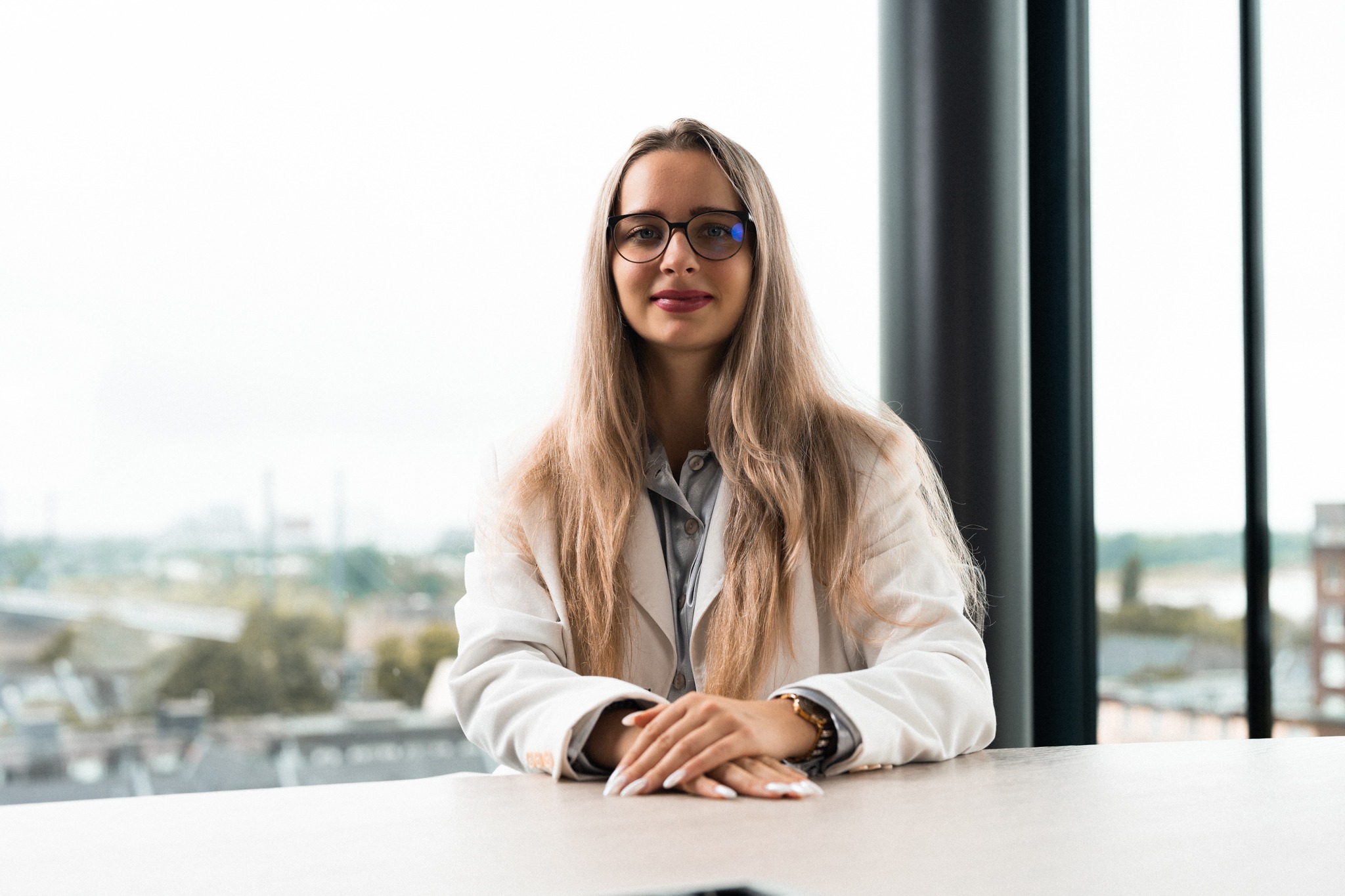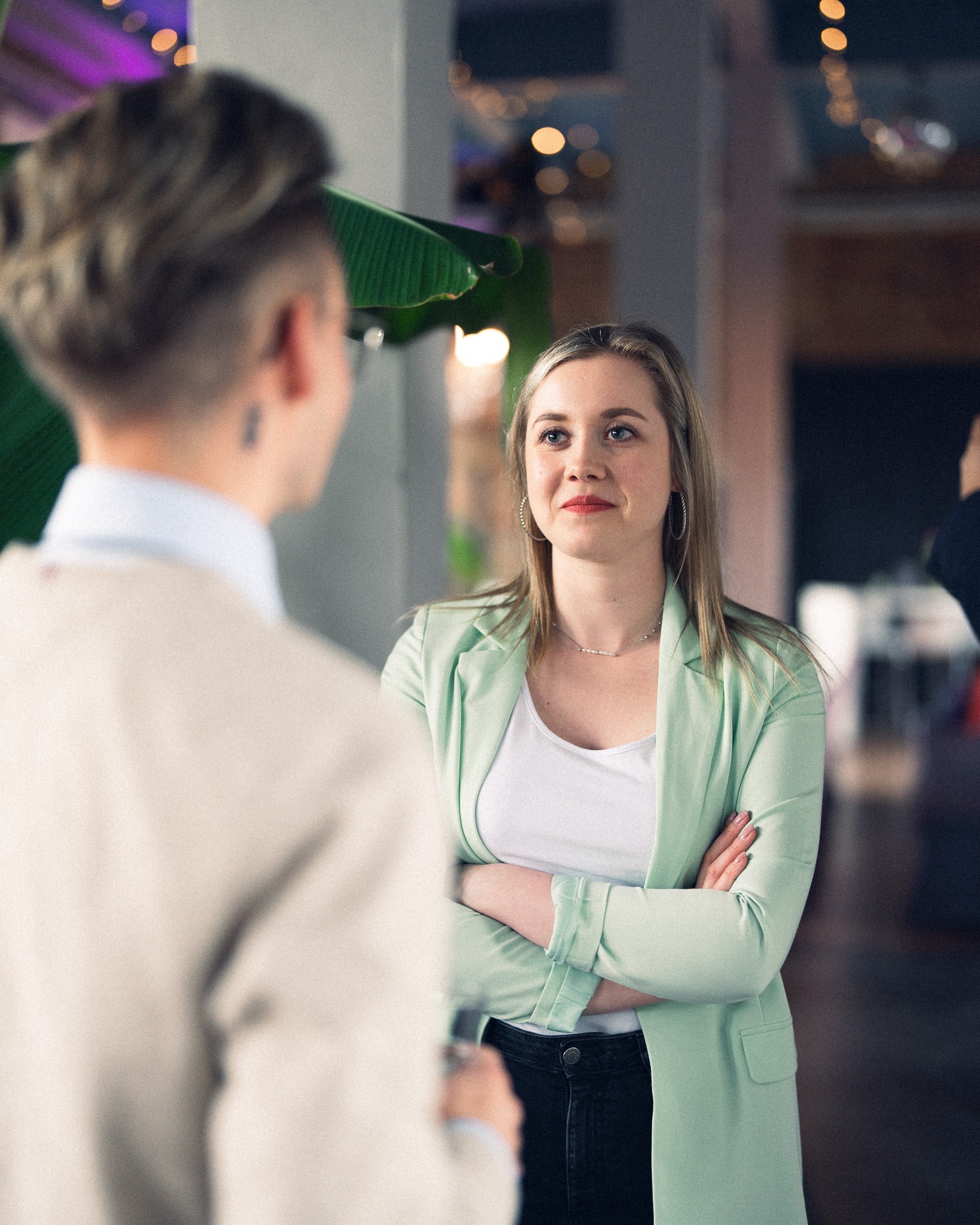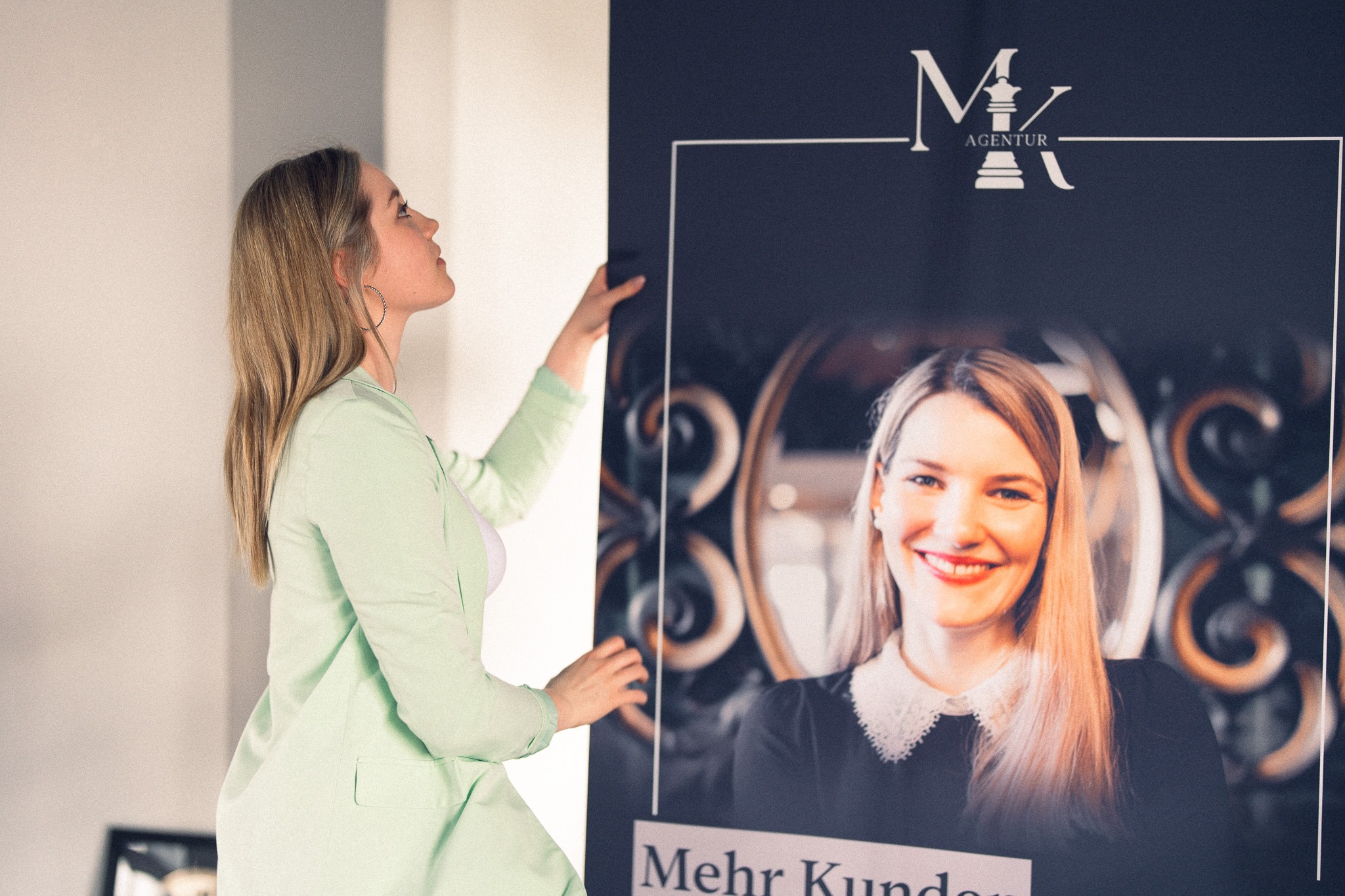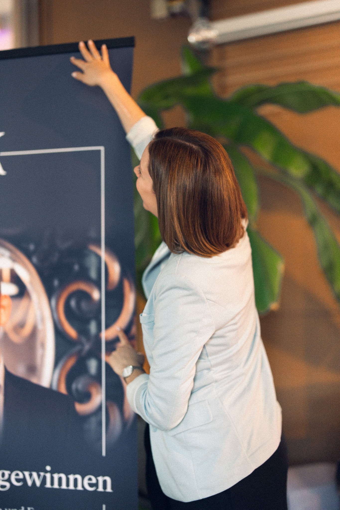 Valerie Sieber (Event-Organisatorin) vor Ort bei einem Event eines Kunden in Frankfurt