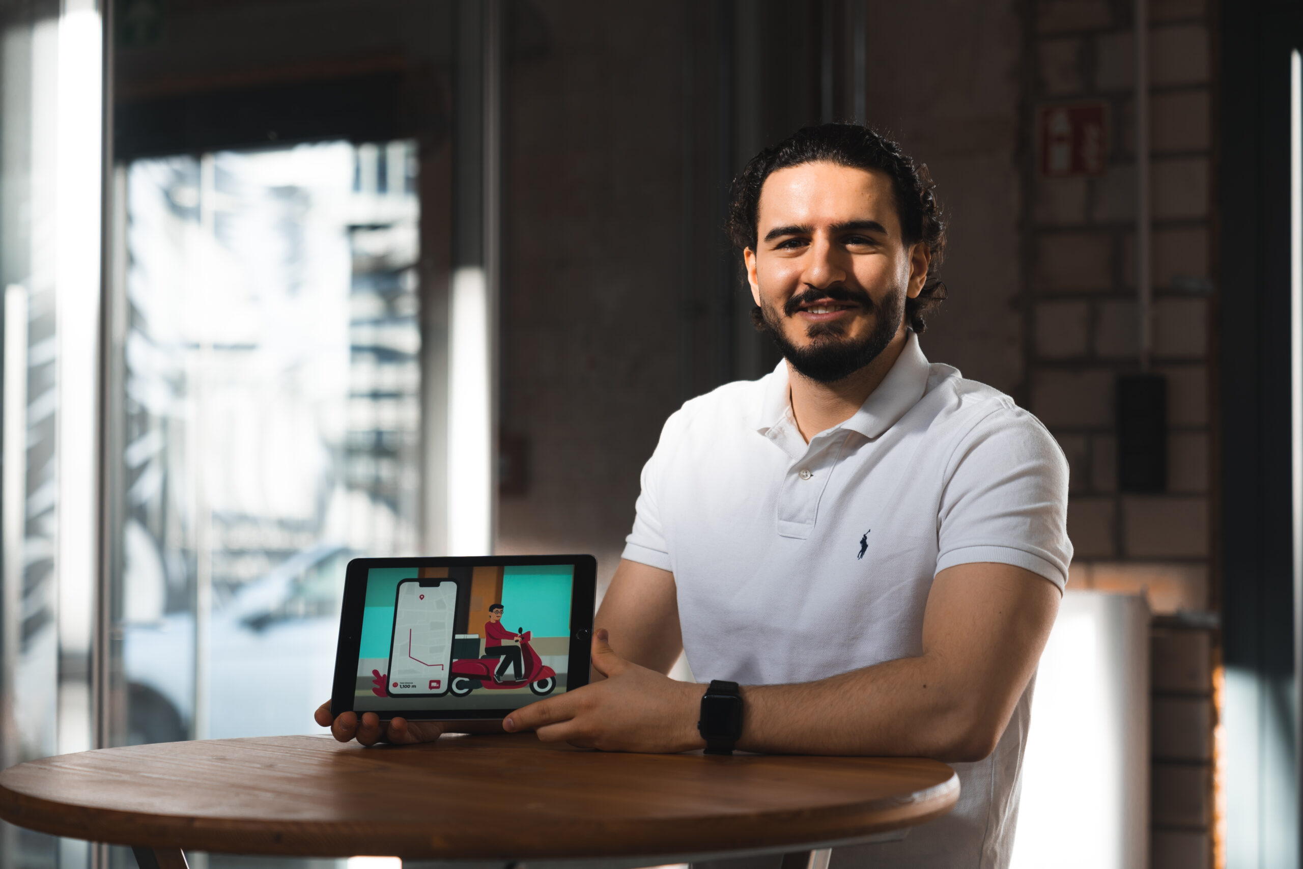 Alexander Tischler (Abnehmcoach) in seinem Büro bei der Kundenbetreuung